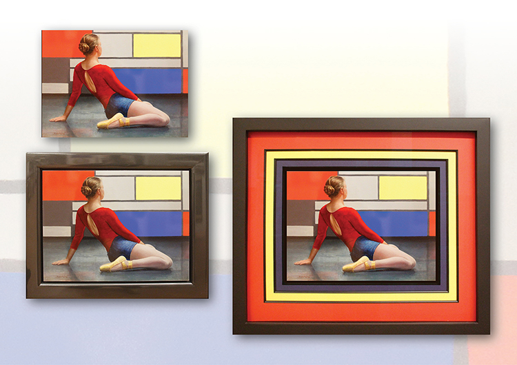 Op de foto ziet u goed wat een passe-partout kan doen voor bijvoorbeeld een foto. Een kleine aanpassing in kleur, dikte of vorm kan het beeld compleet veranderen. Zo zoeken we samen naar de omlijsting die het beste bij uw werk past.